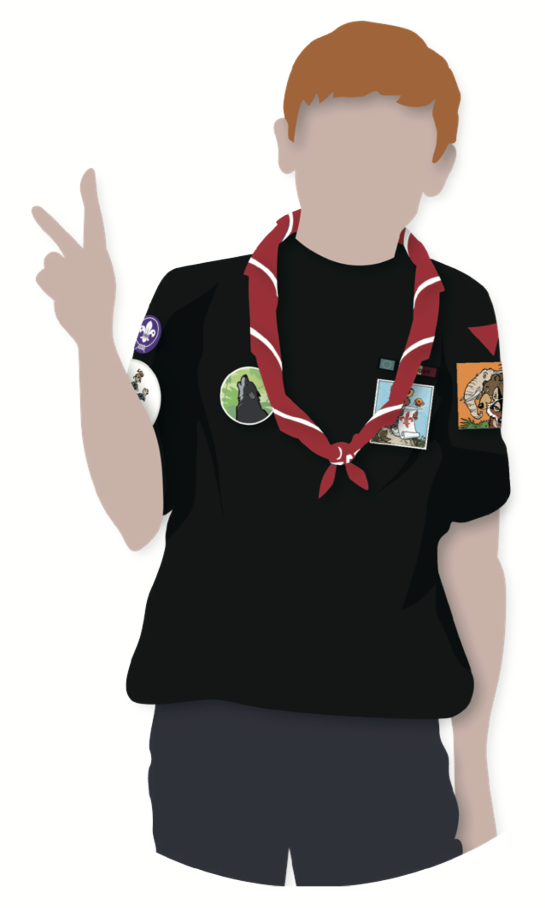 L’insigne du mouvement Les Scouts entre le coude et l’épaule sur la manche droite